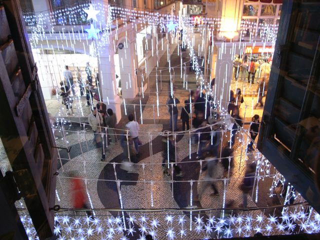 H.I.S.さんのブログで「イカ漁」と書かれていたセナド広場の電飾、Pin-toの窓から見下ろすとわりかしきれいです。
