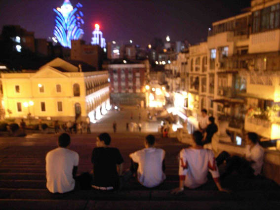 MacauSoulのハムとチーズをたらふく食べたくて、迷わずナナさんを誘ってGO。二人で白ワイン2杯+赤ワインのボトル2本+ポートワイン2杯をきれいに飲み干して酔っぱらいと化す。その後、聖ポールの階段に座って引き続きおしゃべり。過去のこと、今のこと、未来のこと。夜の聖ポールは、腹割って話すにはとてもいいロケーションです。