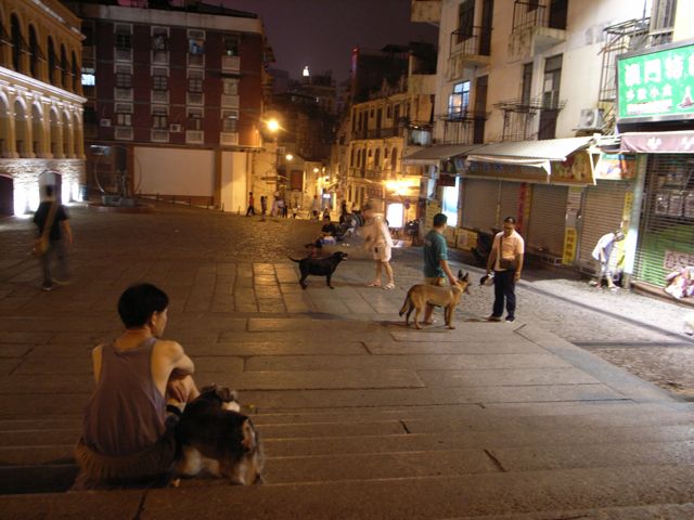 また、夜から夜中にかけては階段に座って友だちと喋ったり歌ったりする人(主にインドネシア人らしい)が集まってきます。ビール持って階段に腰掛けて、グランドリスボアのネオンを見ながら「あたしたち、これからどうなんのかね」「ね」なんて語らうと最高です。